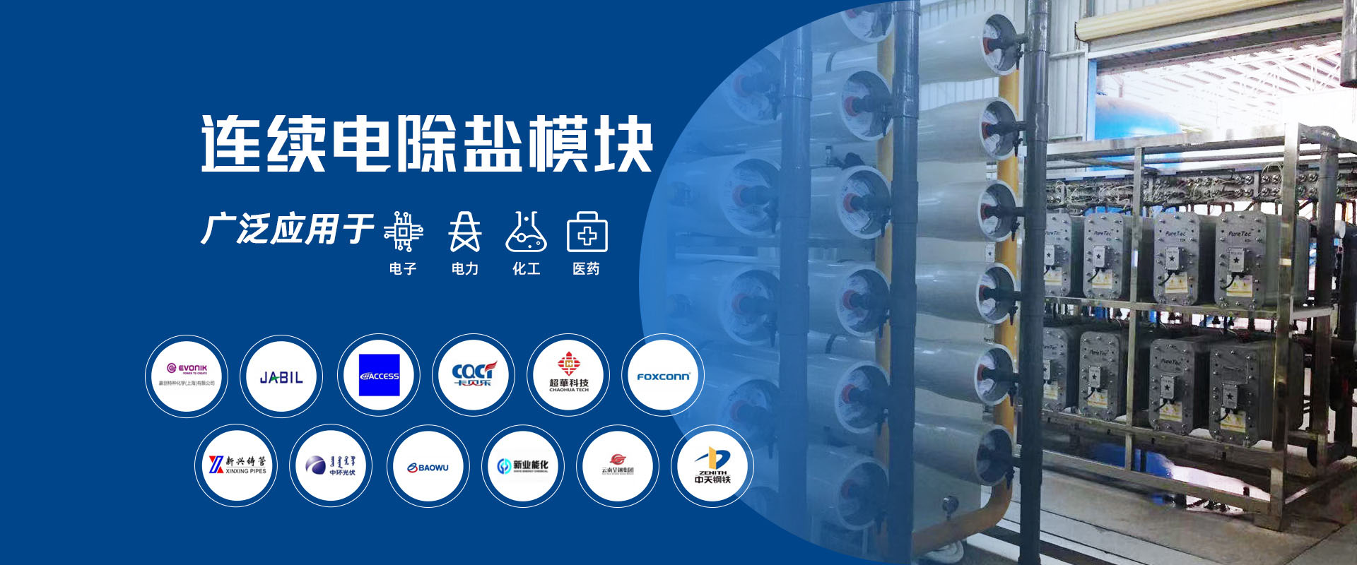 PureTec EDI 连续电除盐模块,广泛应用于电子、电力、化工、医药等行业,应用了连续电 去离子技术,替代传统混床工艺,无需化学再生、无酸碱排放、占地面积小、能耗低、水利用 率高的特点,可以完全满足节能环保的要求。